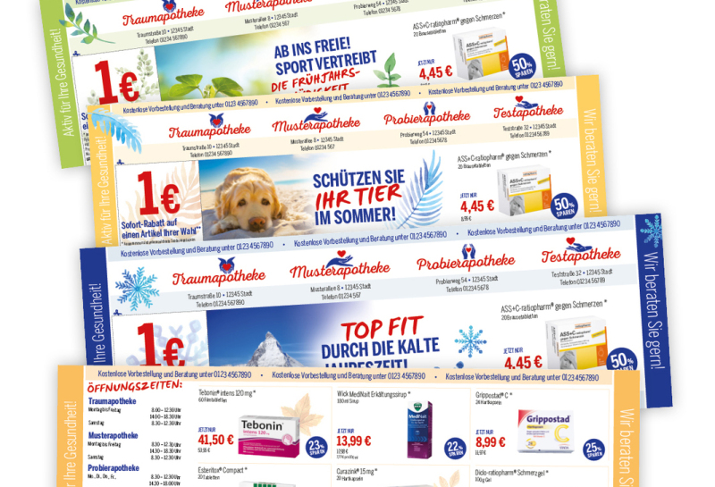 Mit unseren speziell für Apotheken entwickelten Drucksachen und unserer langjährigen Erfahrung im Bereich Marketing sind Sie bestens gerüstet für die täglichen Herausforderungen eines hart umkämpften Marktes.